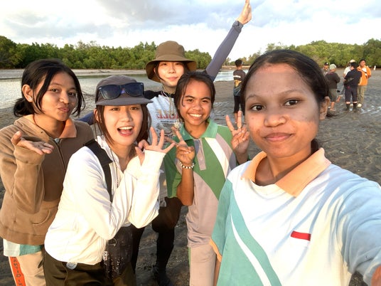 日本人とスンバ島の子どもたちが一緒に植林をしたり海岸のゴミ拾いをしています。