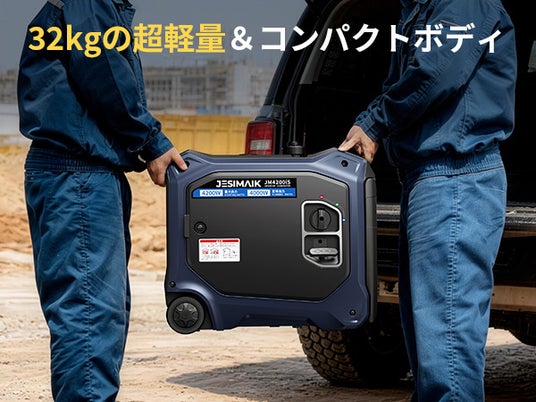 従来の大出力発電機が抱える「重い・始動が困難・メンテナンスが面倒」という課題を解決すべく、JESIMAIKは新モデル「JM4200iS」を開発しました。高出力、携帯性、優れた操作性を兼ね備え、非常時からアウトドア、業務用途まで安定した電力を提供します。