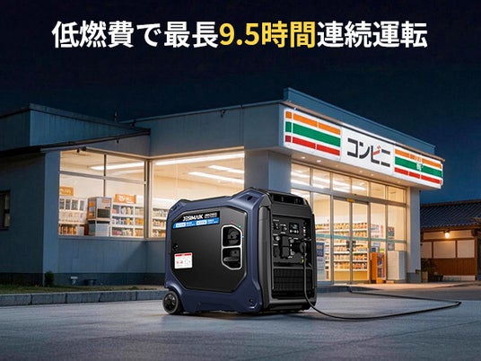 7.5L大容量タンクとECOモードにより、無駄な燃料を抑えつつ最大9.5時間(25%負荷時)の長時間運転を実現。