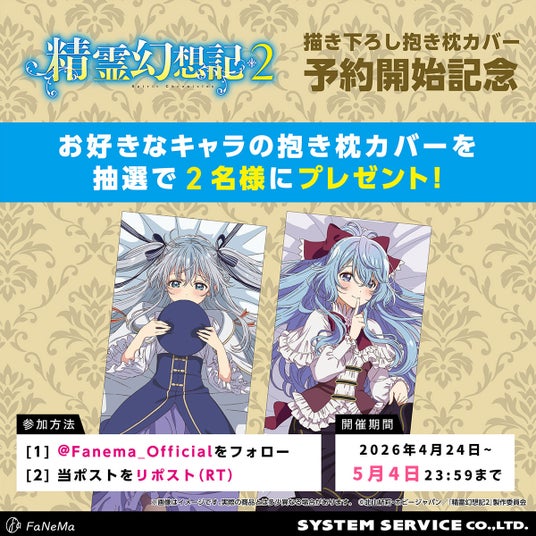 TVアニメ『精霊幻想記2』新商品「抱き枕カバー」の予約開始を記念して、X(旧Twitter)フォロー&リポスト(RT)キャンペーンを実施いたします。