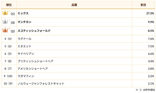 また、トップ10の顔ぶれ自体は昨年と変わらず、順位が多少前後したのみでした。来年もこのまま定番の猫種が人気を維持するのか、あるいは新たな勢力が首位に躍り出るのか、今から来年が楽しみです。