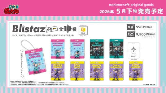 商品には、フィギュアのようなブリスターパック仕様で話題の『Blistaz(R)(ブリスタズ)第1弾(全10種・ランダム商品)』、各キャラクターの目元と『目ヂカラアクリルキーホルダー 第2弾』がラインナップ。キャラクターの魅力を存分に詰め込んだアイテムです。