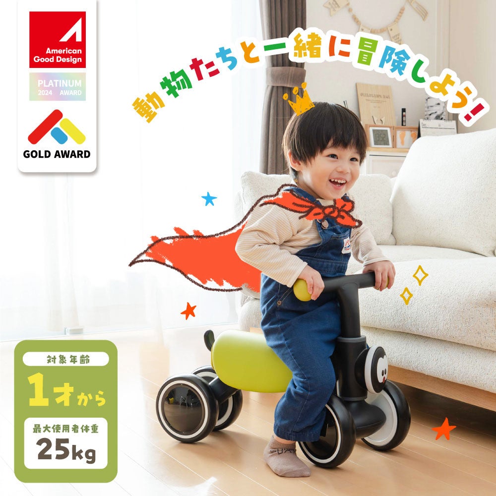 動物をモチーフにした愛らしいデザインで、見た目からお子様の心をグッとつかみます。その優れたデザイン性と機能性が評価され、米国のデザインアワード『American Good Design Award 2024』でPLATINUM AWARD/GOLD AWARDを受賞しています。お子様が使うものだからこそ、安全性はもちろん、インテリアとして置いておきたくなるような洗練されたフォルムを追求しました。