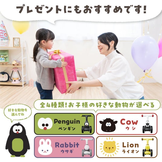 1歳の誕生日プレゼントや入園祝いとしても人気の高い『ちびっこライダー』が、新たな安全基準に対応したことで、より一層ギフトとしても選びやすくなりました。