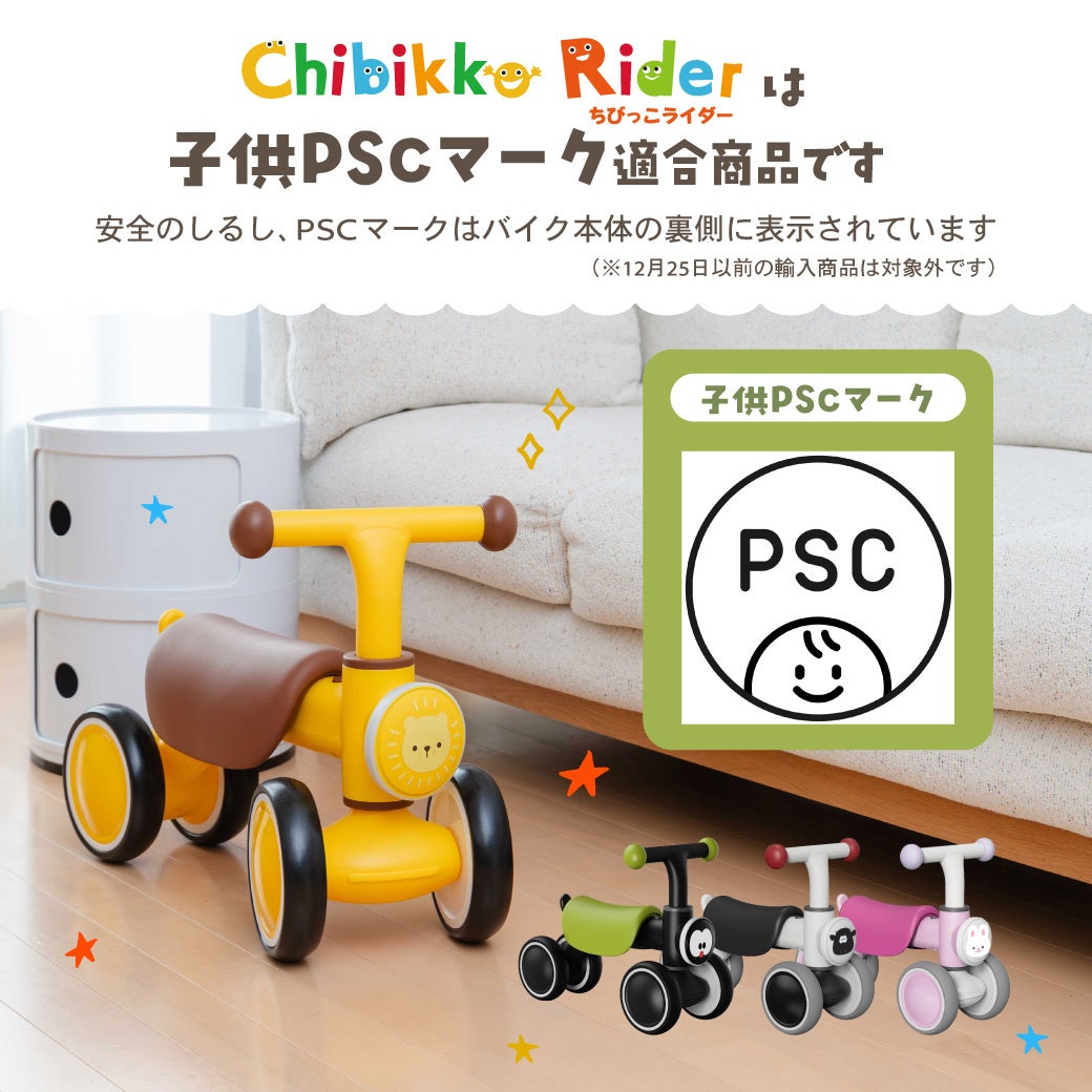 対象製品: 2025年12月25日以降に輸入・販売されるすべての「ちびっこライダー」が対象となります。