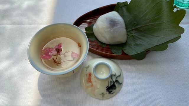 食後に桜湯と柏餅。春の香りいっぱいのランチでございました。