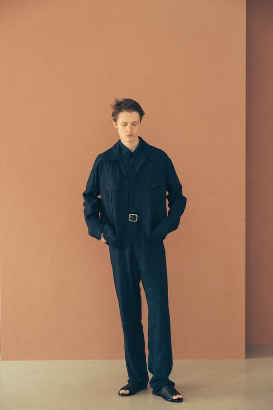 特筆すべきは、その「質感」のギャップ。風を孕むような軽やかさと、独特なドレープ感を生み出すレーヨン生地を用いながら、縫製には「Lee」へのリスペクトを込めたタフなワークディテールを継承。