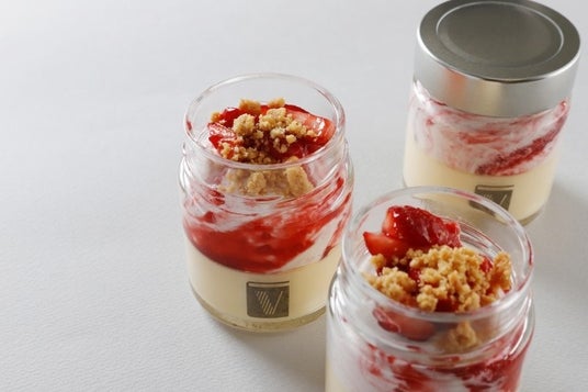 濃厚でなめらかなプリンにチーズクリームといちごを合わせました。