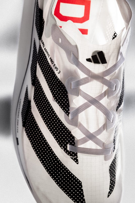 速さのためのすべてを支えてきた「ADIZERO」シリーズの開発の蓄積をもとに誕生した「ADIZERO ADIOS PRO EVO 3」は、マラソンや長距離ランニングにおけるレース用シューズの可能性を追求して設計されたモデルです。アディダス初の100g未満のレース用シューズという開発目標のもと、軽量性とパフォーマンスの両立を図っています。プロダクト部門バイスプレジデントのステファン・スホルテンは、「目指したのは、重量を2桁台に抑えながら、これまで以上のパフォーマンスを実現することでした」と述べ、「ADIZERO」シリーズの最新モデルとして登場する「EVO 3」には、スピードと効率性の追求に向けた複数の新要素が採用されています。