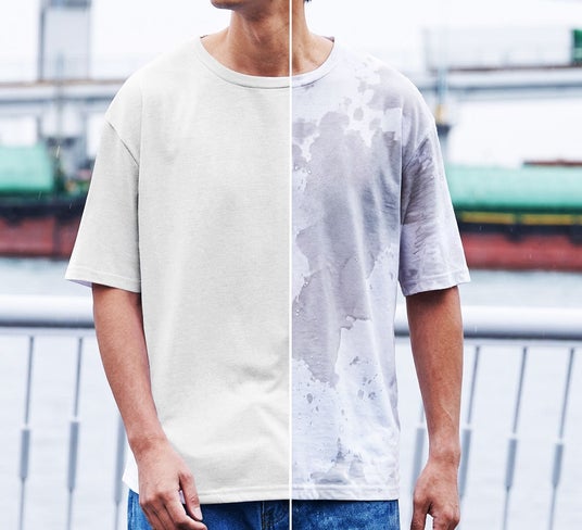 濡れているのに、なぜか目立ちにくい。そんな見た目の違和感を生む白いTシャツが登場しました。