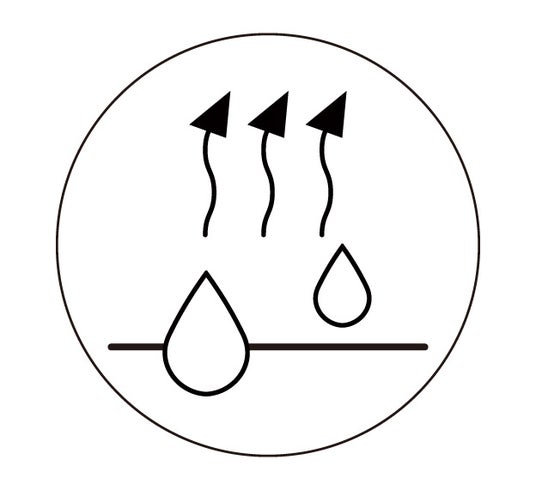 繊維に配合した鉱物粉末が光を乱反射させ、濡れている部分と乾いている部分の境目をぼかすことで、汗染みを視覚的に目立ちにくくする仕組みを採用。