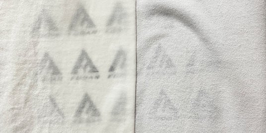 左側︓一般的な綿生地 右側︓汗染み軽減生地