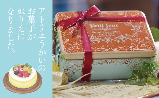 縦180mm、横165mmと小ぶりな冊子に、アトリエうかいのアイコニックな商品「クッキー缶」をモチーフにしたカバーで、まるで本自体がお菓子の箱のような、雰囲気ある凝った装丁を施しました。また、巻末に掲載の「知っておきたい洋菓子のあれこれ」も読み応え十分で、より楽しい仕上がりになっています。ご自分の楽しみのほか、贈り物にも最適な一冊です。