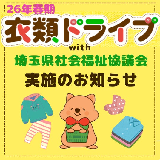 「衣類ドライブ」活動では、店舗でお預かりした衣類を、埼玉県社協が県内の社会福祉法人と連携して実施している社会貢献活動「衣類バンク事業」に提供し、支援が必要なご家庭に無償でお届けいたします。また当社では、連携する団体を通じて、支援を必要としている方々に食品を届ける「フードドライブ」活動にも133店舗で取り組んでおります。これらの活動を通じて、地域の活性化および持続可能な発展に貢献してまいります。皆さま方の温かいご支援をよろしくお願い申し上げます。