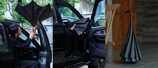 撥水性の高い生地であっても、使用を重ねる中で汚れや手の油分が付着し、撥水性能は徐々に低下していきます。その結果買い替えられてしまうケースが少なくありません。こうした課題に対し、「SAKASANANO」では撥水面に手が触れにくい逆さ構造を採用。撥水性能の持続性向上を図りました。傘を閉じた際に濡れた面が内側になるため、手や⾐服を濡らさず、車の乗り降りや電車内での使用時にも快適に使用できます。ご自身も、そして周りの人も濡らさない配慮にもつながります。さらに、自立構造により傘立てが不要といった、逆さ傘の従来の機能性も備えています。