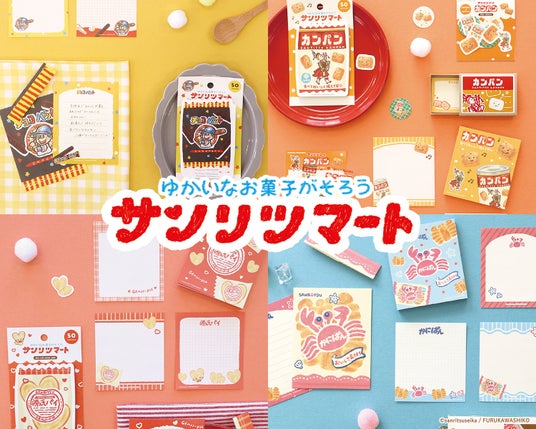 紙文具メーカーの古川紙工株式会社(本社:岐阜県美濃市、代表取締役社長:古川慎人、以下 古川紙工)は、三立製菓株式会社(本社:静岡県浜松市、代表取締役社長:清水康光、以下 三立製菓)とのコラボシリーズ『サンリツマート』シリーズを発売いたします。全国の雑貨店・書店等での販売は5月中旬頃より順次販売予定です。
