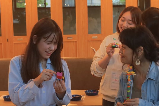 会場となったSHIMOKITA COLLEGEでは、アットホームな雰囲気の中で、参画団体によるユニークな自己探究ワークショップが展開されました。特に注目を集めたのは、オリジナルのAIを活用して自らの強みを言語化するワークや、レゴ(R)ブロックを用いて自己探究を深めるセッション。普段とは異なる手法に触れながら、ほしい未来を言語化していく時間となりました。また、さとのば大学オリジナルの「地域留学体験ゲーム」では、1年ごとに拠点を変える4年間を疑似体験。日本地図を前に、暮らしたい地域を選び、一人一人異なる経験を積み重ねていくオリジナルの4年間から、「自分が何かに熱中したいと思っていることに気づいた」など、今の自分に必要なものを見つける機会となりました。