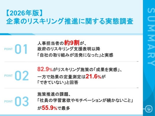 株式会社イー・コミュニケーションズ(本社:東京都港区、代表取締役:佐藤信也)は、従業員300名以上の企業の人事・人材開発担当者111名を対象に、【2026年版】企業のリスキリング推進に関する実態調査を実施しましたので、お知らせいたします。