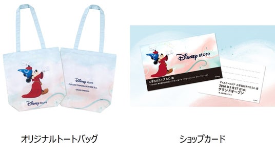5,000円(税込)以上お買い上げで二子玉川ライズ S.C.店限定デザインのオリジナルトートバッグをプレゼントします。さらに店内では、ご希望の方に二子玉川ライズ S.C.店限定のショップカードをプレゼントします。詳しくはディズニーストアキャストにおたずねください。