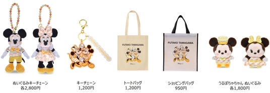 グランドオープンを記念して、全11種類の二子玉川ライズ S.C.店限定アイテムを発売します。ミッキーマウスとミニーマウスが黄色と白を基調としたコスチュームに身を包んだ華やかなアートです。鮮やかなビーズストラップがアクセントのぬいぐるみキーチェーンをはじめ、“FUTAKO TAMAGAWA”の文字がポイントのキーチェーンやトートバッグ、ショッピングバッグなど、限定感のあるアイテムを豊富に取り揃えます。また、「うるぽちゃちゃん」からは、お揃いのコーディネートが愛らしいミッキーとミニーのぬいぐるみが登場します。