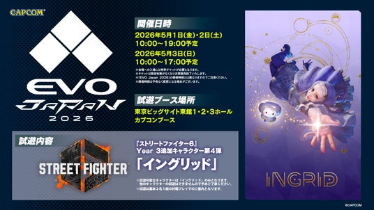 5月1日(金)~3日(日)に東京ビッグサイトで開催される「EVO Japan 2026」に、『ストリートファイター6』Year 3追加キャラクター第4弾「イングリッド」が試遊出展決定!