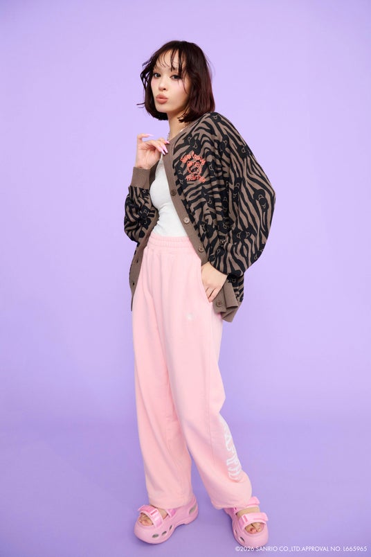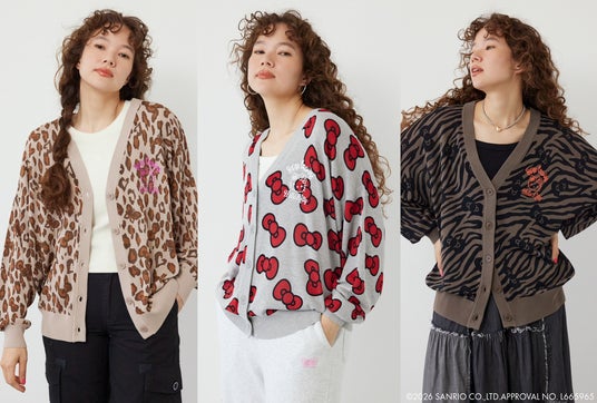 今回のコラボレーションは、ハローキティ、クロミ、マイメロディ、シナモロールが、ギャルテイストになって登場。レオパードやゼブラの総柄、ラインストーン使い、オールドイングリッシュロゴなど、2000年代を彷彿とさせるデザインアイテムを展開。Tシャツやニットカーディガン、スウェットパンツ、バッグやポーチ、チャームなど、計11アイテムを発売いたします。