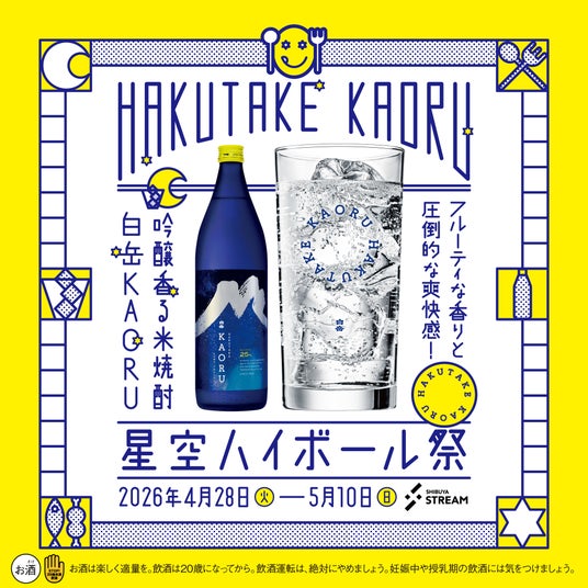 高橋酒造株式会社は、4月28日(火)から5月10日(日)の期間で、渋谷駅直結のランドマーク的複合施設「渋谷ストリーム」にて「白岳KAORU 星空ハイボール祭」を開催いたします。