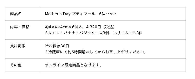Mother's Day プティフール 6個セット