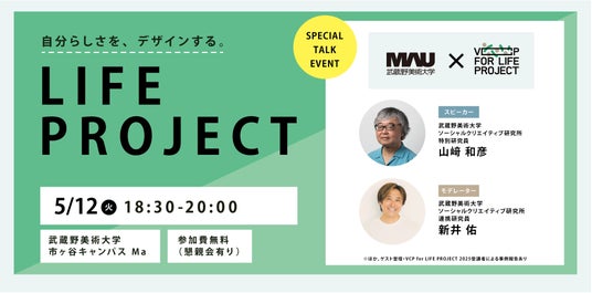 武蔵野美術大学7(所在地:東京都小平市/学長:樺山祐和)は、社会人向けプログラム「VCP for LIFE PROJECT 2026」の募集を開始します。これにあわせて、本プログラムの考え方や学びの魅力を紹介する公開トークイベント「LIFE PROJECTとは? 自分らしさを、デザインする。」を、2026年5月12日(火)に武蔵野美術大学市ヶ谷キャンパスで開催します。