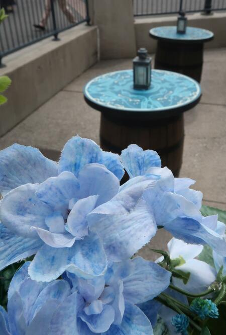 「スパークリング・ジュビリーワゴン」のフォトスポットは、青いお花がとても綺麗。