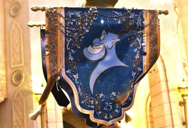 ジーニーが数分おきに色々なセリフをしゃべり、アラジンの曲の他にも25周年のテーマソングも流れます。