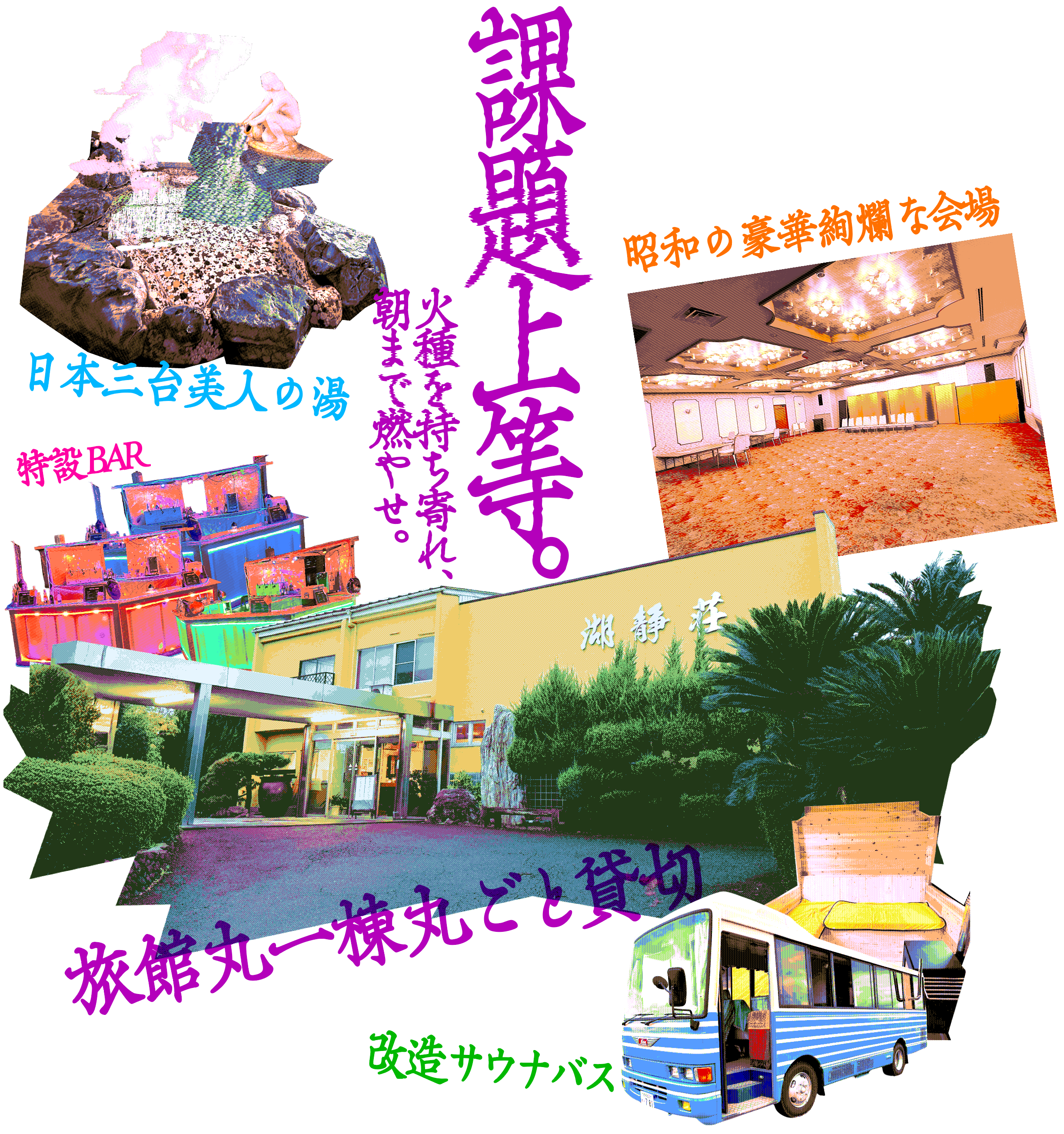 【特徴1.】“日本三美人の湯”と特設サウナバスが彩る、湖静荘ならではの一夜── 湯につかり、整い、ほどけた心で語り合う