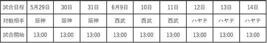 5月29日(金)~31日(日)の阪神戦は「伝統の一戦~The Classic Series~」として開催し、両球団OBによるトークショーや、全来場者へのオリジナルクリアファイル配布を行います。6月13日(土)・14日(日)のハヤテ戦は、CLUB 「CLUB GIANTSデー」として開催し、CLUB GIANTS会員先着600人にオリジナルTシャツを配布します。