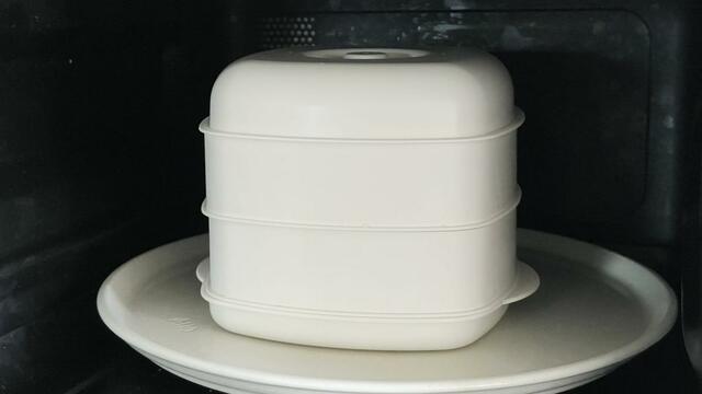 2段目のせいろを積み重ねたら、フタをして電子レンジで加熱したら完成です!