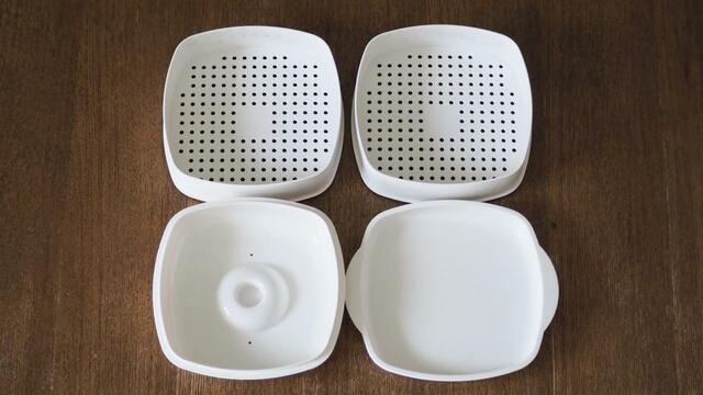 電子レンジで使えるせいろ蒸し器で、一度に2品調理ができます。