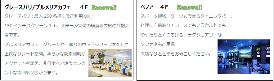 ミツウロコが運営する「横浜天然温泉SPA EAS」および「ハマボール」のリノベーションと、さらなる新店舗を迎えたグランドオープンは7月28日を予定しております。