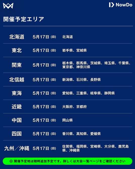 ※画像の掲載されている開催予定エリアは4月24日(金)時点となり、大会は随時追加予定です。