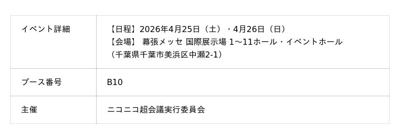 ニコニコ超会議2026の詳細はこちら▶https://prtimes.jp/main/html/rd/p/000000320.000074603.html