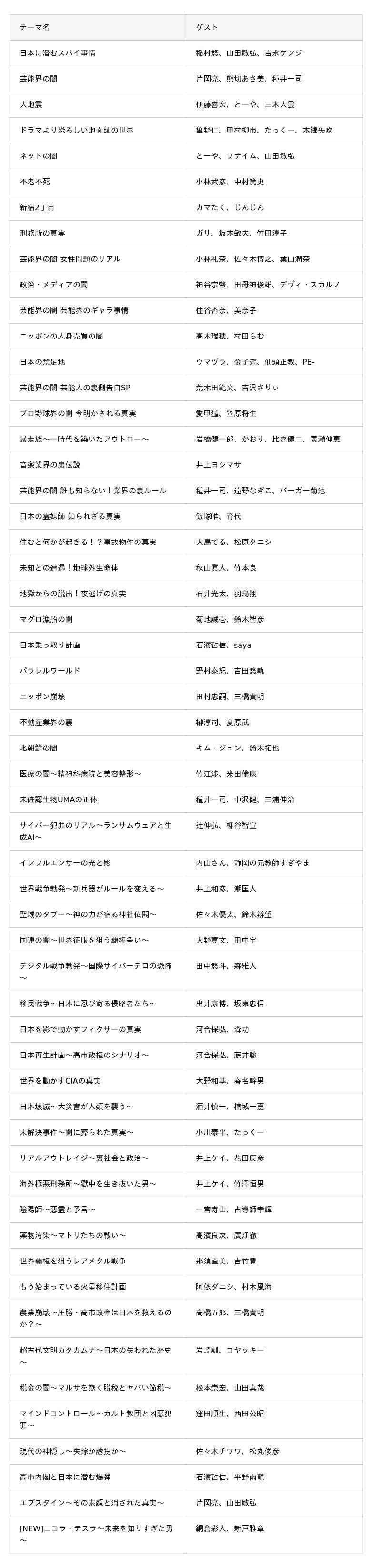 【配信中のテーマ・各回ゲスト】