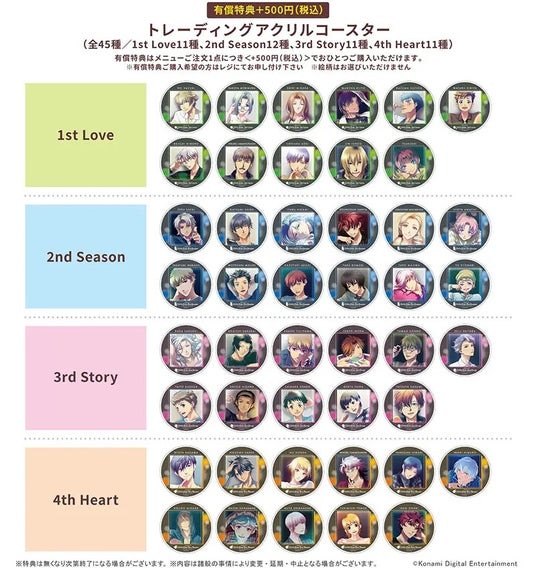 トレーディングアクリルコースター(全45種/1st Love11種/2nd Season12種/3rd Story11種/4th Heart11種)