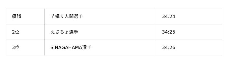 「捲り切って、1位のゴール!!」というJustive7氏の絶叫とともに、見事U600の部のチャンピオンの座に輝いたのは芋掘り人間選手。