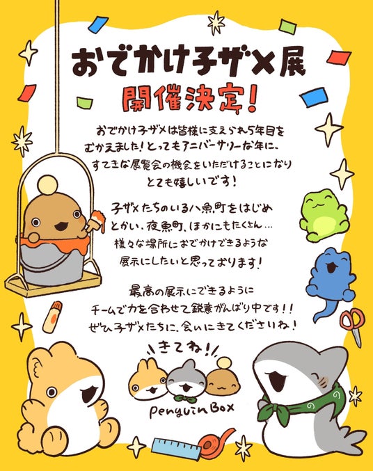 そんな『おでかけ子ザメ』5周年を記念して、シリーズ初の展覧会を開催します。