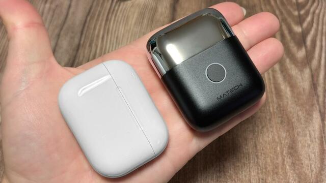 一番の特徴は、なんといってもコンパクトさ。AirPods Pro 3と並べてみるとこの通り!