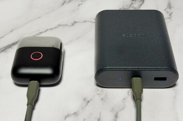 バッテリーはもちろん内蔵。USB-Cで充電可能なので、スマホの充電器やモバイルバッテリーからも充電することができました。