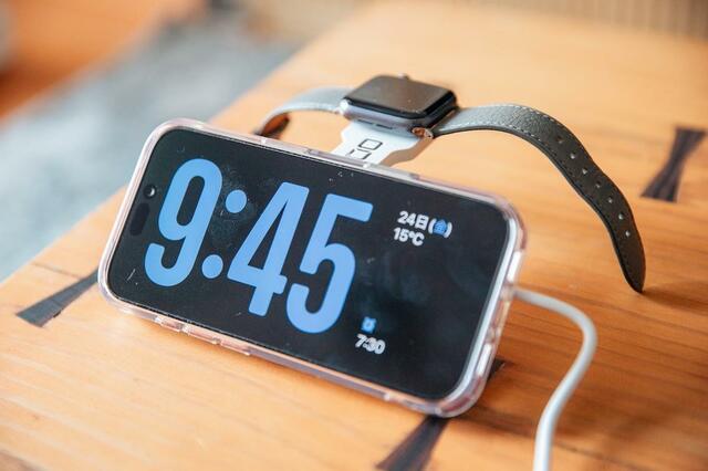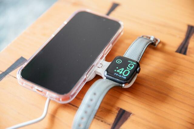 充電したいときはこんな感じ。載せるだけで、iPhoneとApple Watchを同時に充電できちゃいます。