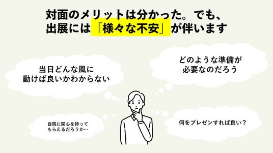 「そうは言っても、ブースで何を話せばいいかわからない」「準備に不安がある」という医院様の声に応え、クオキャリアでは専任担当者が事前準備から当日の運営まで一貫してサポートいたします。