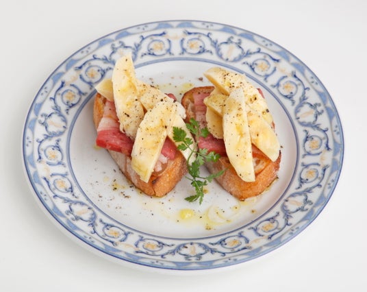 オーブンの熱を入れ、柔らかくした甘熟王バナナを使用した甘じょっぱいピンチョスです。バナナ