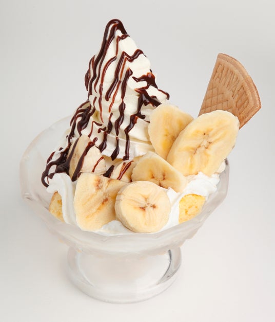 甘熟王バナナを練り込んだバニラアイスに、チョコレートソースをトッピングしました。添えたスライスバナナと一緒に召し上がっていただくと、甘熟王バナナの甘みをよりしっかりと感じていただけます。