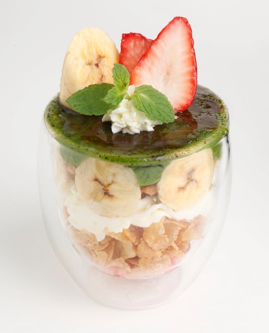 甘熟王バナナのコクのある甘みと、当店自慢の抹茶の深い味わいに、レモンゼリーの爽やかな酸味とイチゴの鮮やかな彩りを添えました。軽やかで奥行きのある味わいをぜひお楽しみください。