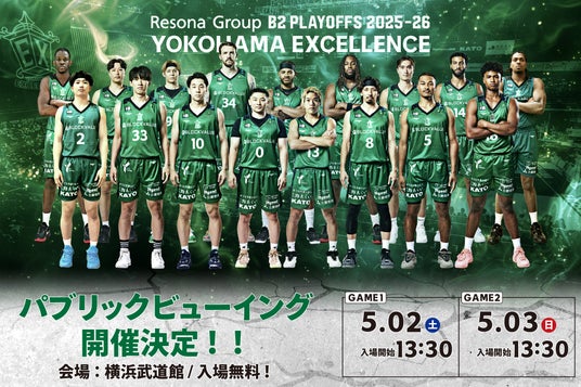 2戦先勝方式で勝ち残りをかけた「りそなグループ B2 PLAYOFFS 2025-26」、「B2優勝」へ向けてEXs一丸となって、横浜の地からも熱い応援を届けましょう!!